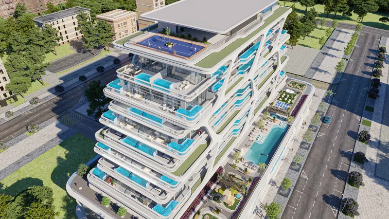 Standing tall with its contemporary architectural design and impressive facade, this structure stands out as a notable addition to the Dubai skyline. Seamlessly integrated into its surroundings, it creates an aesthetically pleasing and harmonious environment. Inside, meticulous attention has been paid to optimize comfort, functionality, and visual appeal. Each apartment boasts a modern, open layout that welcomes abundant natural light and ventilation, fostering a refreshing and inviting living space.